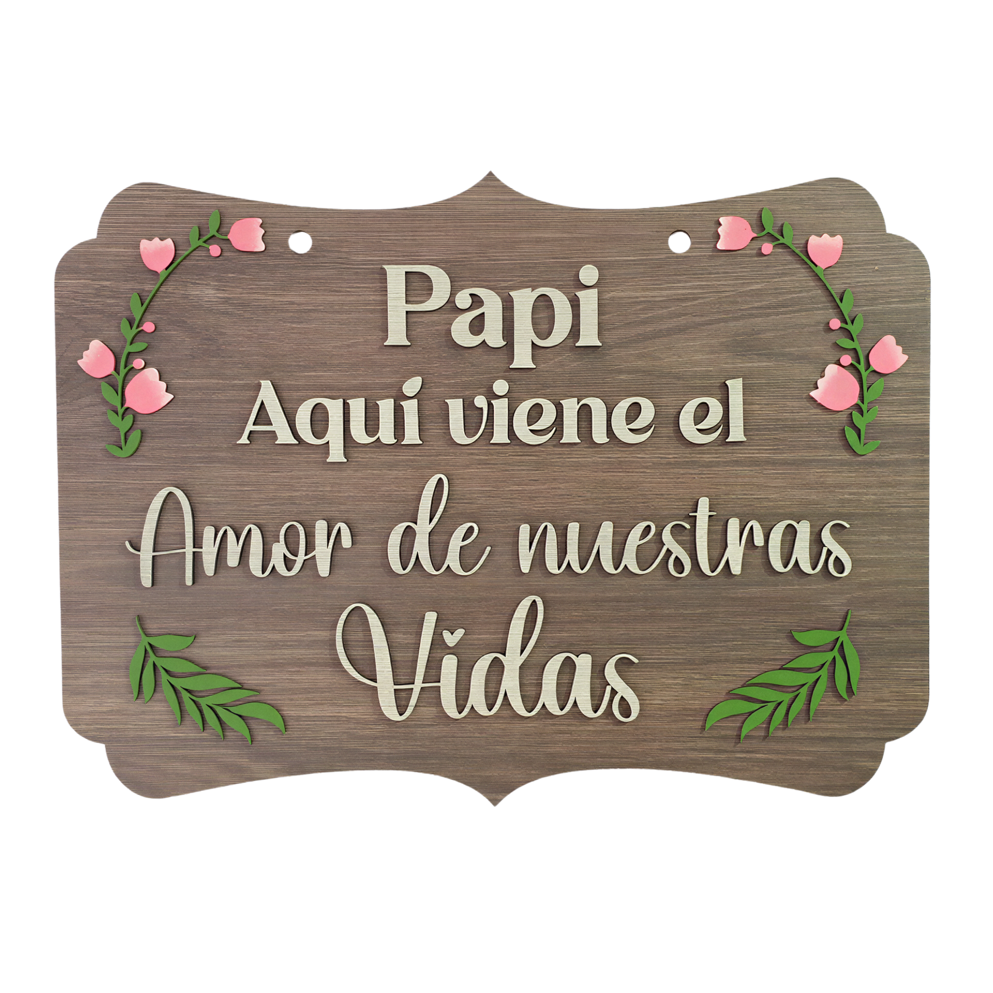 🌟 Colores: MDF blanco con letras cafés o MDF café con letras blancas